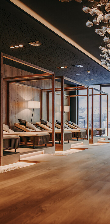 Relaxation room in the Adults Only area hotel grossarl with floating loungers and wooden features